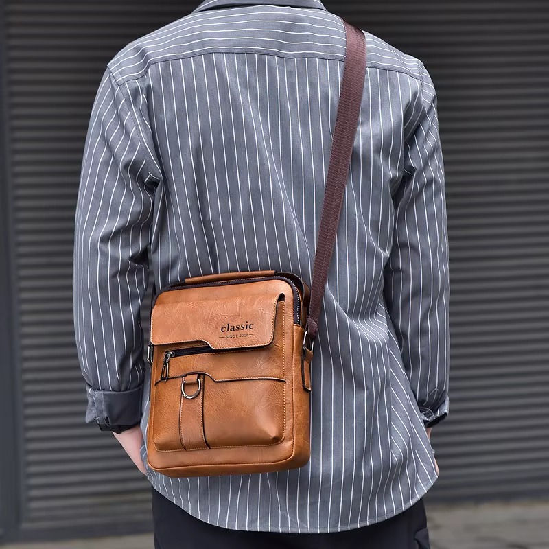 Professionals/Entrepreneurs Office men and small business owners who need a portable leather, organized bag to carry essentials like wallet, phone, documents, or tablet without looking bulky.